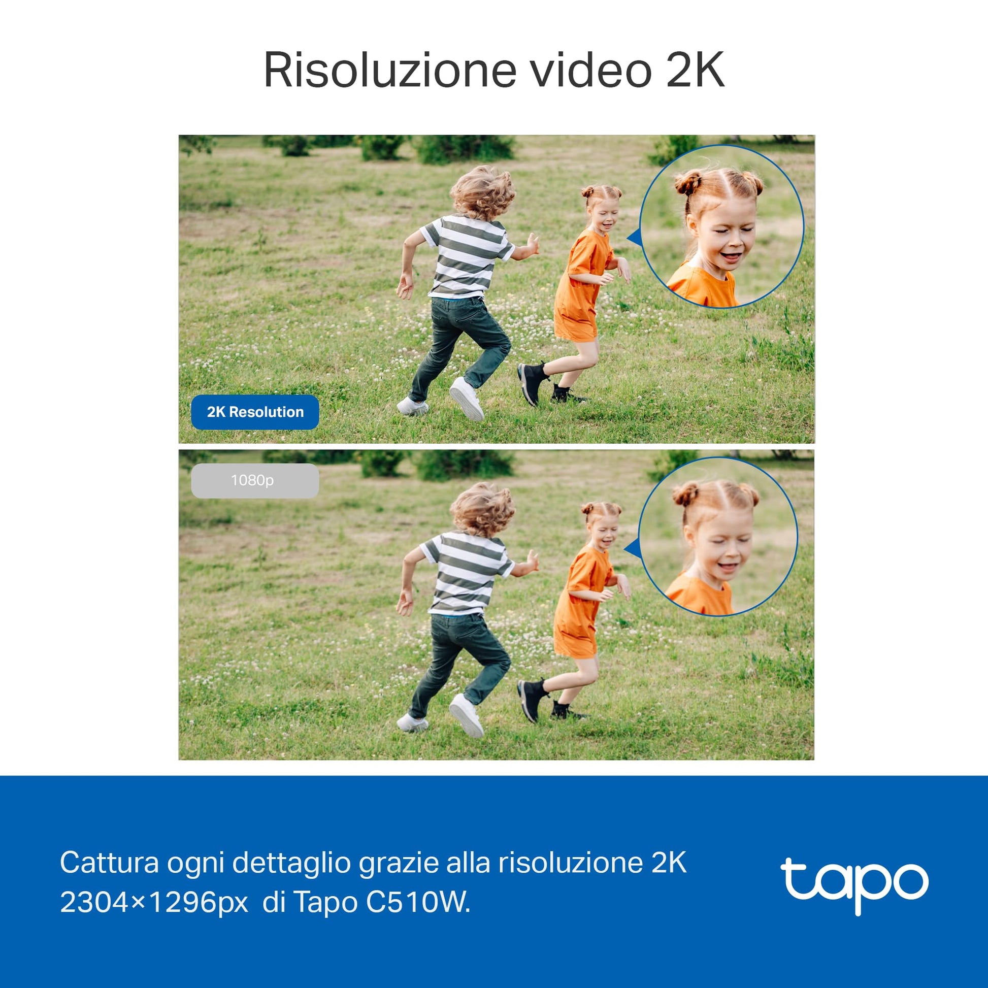 - Risoluzione 2K: con la risoluzione di 2304 × 1296 px, Tapo C510W migliora la tua sicurezza catturando più dettagli rispetto al tradizionale 1080p (1920 × 1080 px)